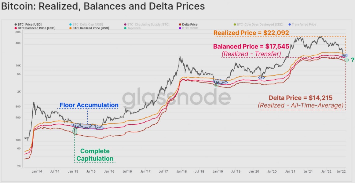 当谈到交易员应该注意哪些因素会标志着寒冬的结束时,Glassnode强调,Delta价格和Balanced价格是“熊市后期往往会吸引现货价格的链上定价模型。”