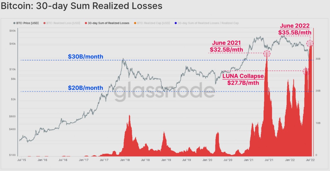 投降已经发生的进一步证据是在5月和7月期间锁定已实现损失的 "惊人的BTC数量"。