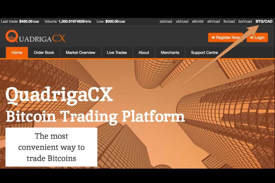 Gerald Cotton是唯一握有存取权限密码的人,平台上用户价值约 1.8 亿加币(约新台币 42 亿元) 遭到锁死,2019年1月31日,Quadriga 宣布,在经过数月的交易延迟后,已向最高法院申请债权人保护。