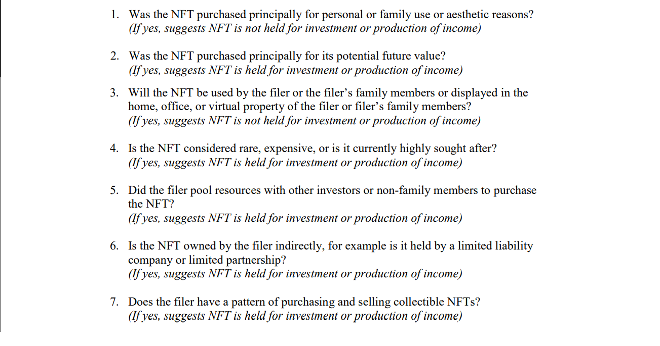 该警告主要针对代表“财产”(如房地产)的NFT投资申报。