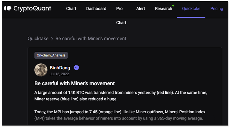 近日区块链分析公司 CryptoQuant 公布最新数据中就显示,上周末 24 小时内有 14,000 个比特币从矿工的钱包转移出来,就当时的价格换算,总价值超过 3 亿美元。