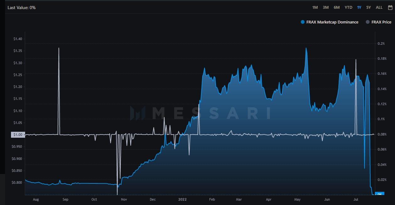 这种机制可能在所有市场条件下都表现良好,因为抵押品比率会根据市场条件进行调整。唯一的风险是抵押品的质量——如果接受的抵押品的风险高于高波动性时期,就存在大规模清算的风险。到目前为止,这还不是一个大问题。拿FRAX来说,它只经历了两次脱钩:一次触及0.96美元,另一次触及1.07美元。它已经成功地从两次动荡中恢复过来,并一直保持稳定。