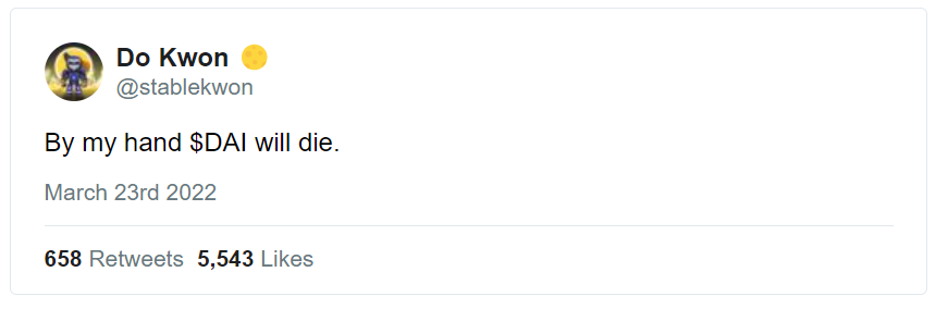 说实话,这其中的部分原因是,Do Kwon在他的狂妄自大的讨伐行动中专门针对了Bankless团队成员,以扼杀DAI。