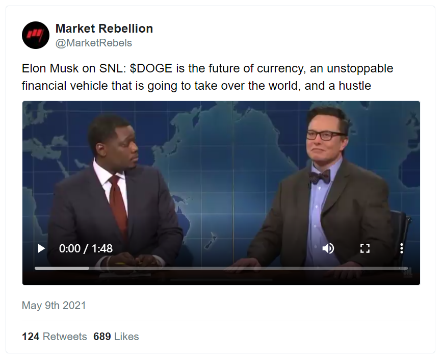 购买比特币,接受比特币作为特斯拉的支付方式,《周六夜现场》,拉高狗狗币价格。