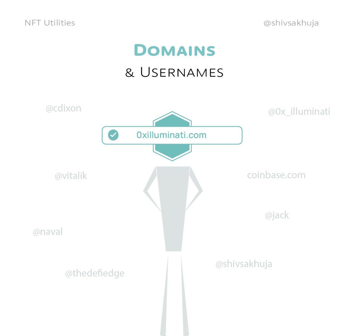 比如域名和用户名。你可以在Unstoppable、ENS、Raible购买NFT域名。