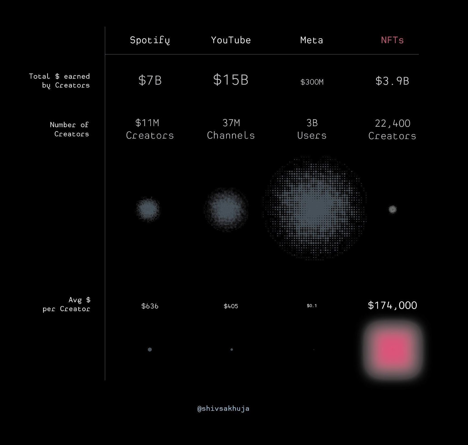 例如,投资者可以获得代表未来收益权利的NFT。这对于那些不在前1%的人就赚不到钱的领域特别有用(比如有抱负的艺术家、运动员、演员等)。
