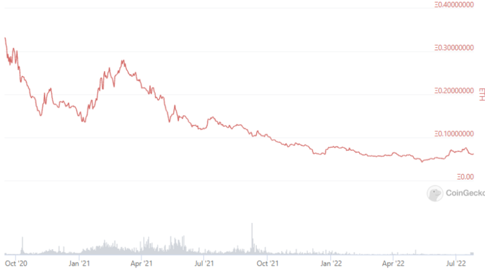至少从2020年10月开始,DeFi代币对ETH的价格就一直在下挫。