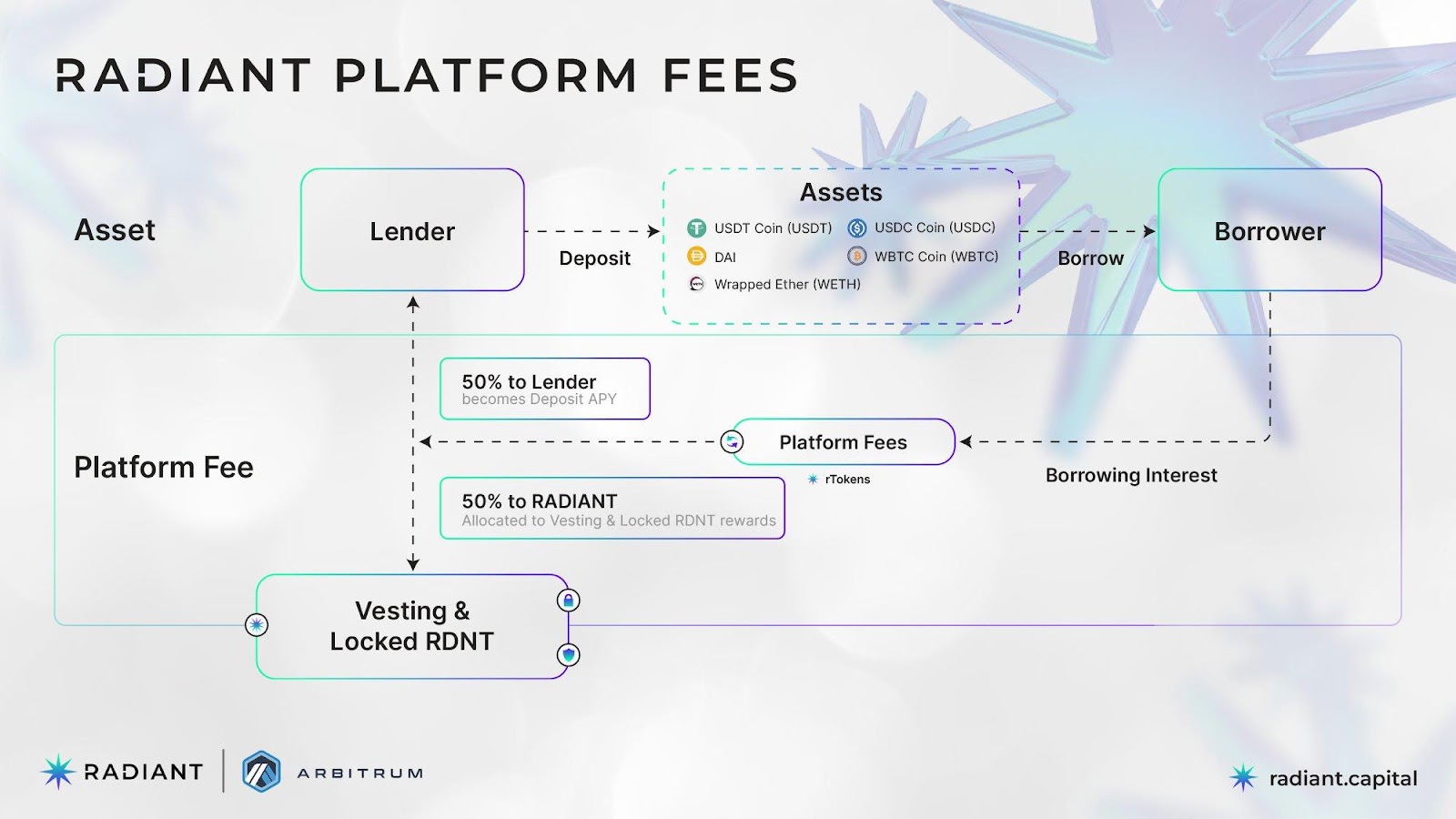 为Radiant提供流动性的出借人将从他们存放的资产中获得被动收入。借款人可以在不出售资产和平仓的情况下提取抵押资金以获得流动性(营运资本)。