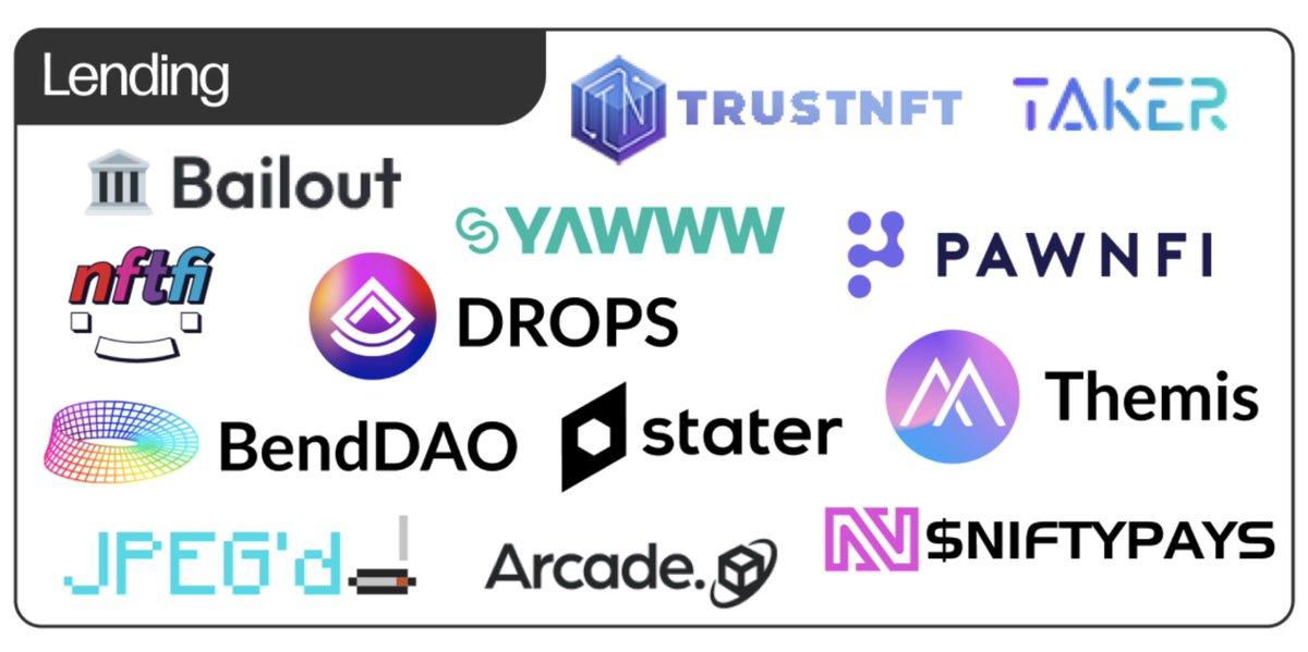 超额抵押的NFT借贷协议(如传统DeFi中的Compound、Aave和Maker)允许用户在不损失NFT敞口的情况下,释放NFT投资组合中的一部分流动性。目前的NFT借贷市场有以下三种: