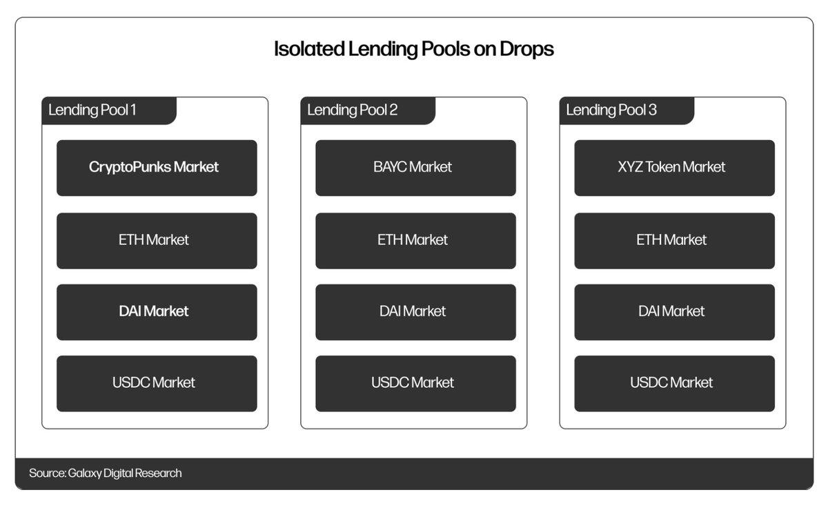 为了限制流动性提供者的风险敞口,Drops将协议分成独立的池,每个池都有自己的NFT集合。这与Fuse在Rari Capital的运作方式类似。这确保了出借人可以选择他们满意的NFT。