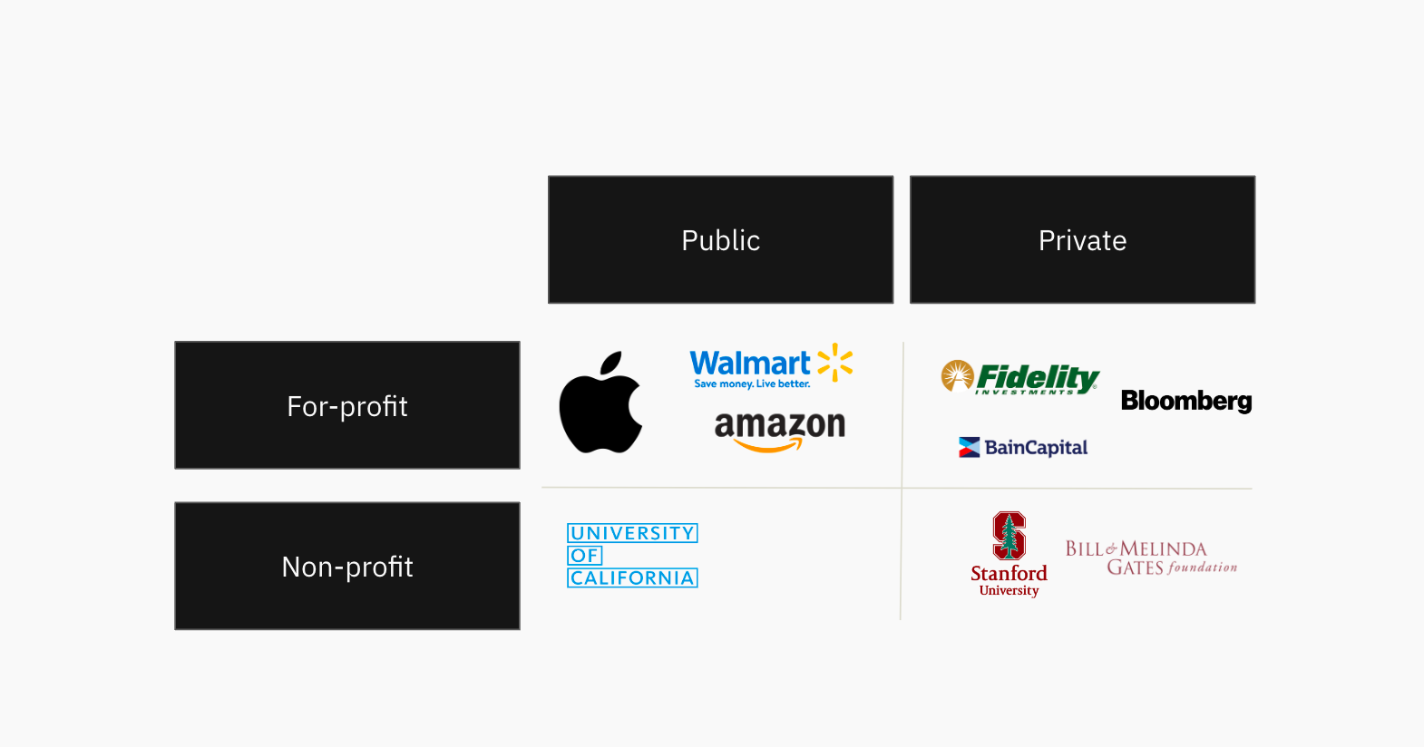 从历史上看,治理决策基于两方面的考虑:营利与非营利、公共与私有。