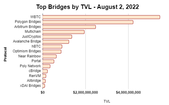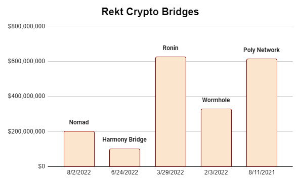 对于坏人来说,加密桥类似于蜜蜂的花朵。随着世界变得更加多链和加密资产总市值(以及 DeFi TVL )的增加,这些桥将变得越来越有利可图。截至 2022 年 8 月 2 日,超过 200 亿美元的资金被锁在多个桥上。