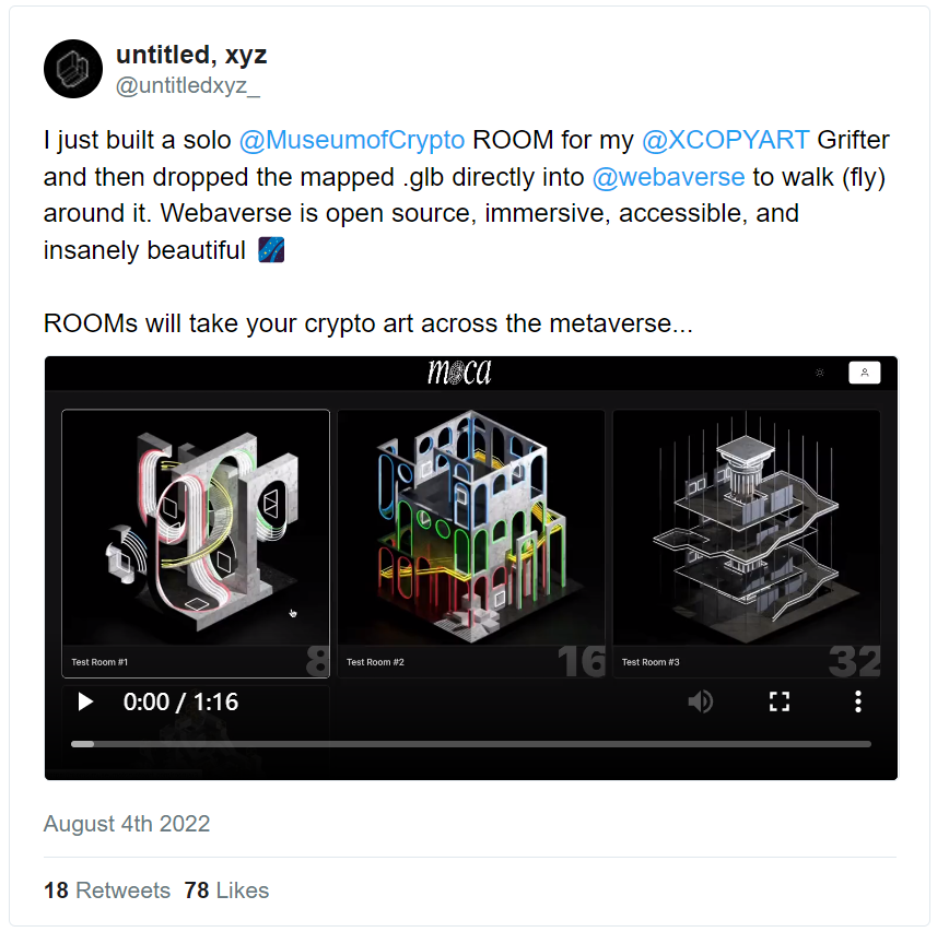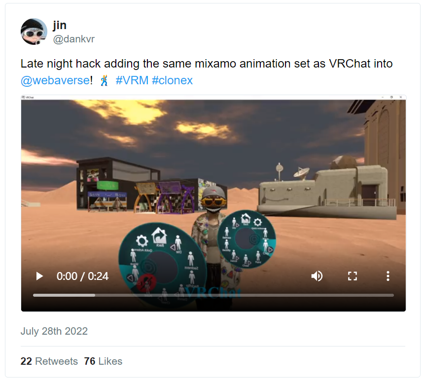 “提醒大家,99%的社交VR都是闭源的,甚至大多数基于加密货币的VR也是如此,而Webaverse是一个例外,在元宇宙炒作的前几年,它一开始就走上了建立真正开放的堆栈的艰难道路......Webaverses是模组制作者(modder)的天堂,是互联网remix/模因文化的完美匹配”——扩展现实(XR)哲学家,Webaverse撰稿者Jin
