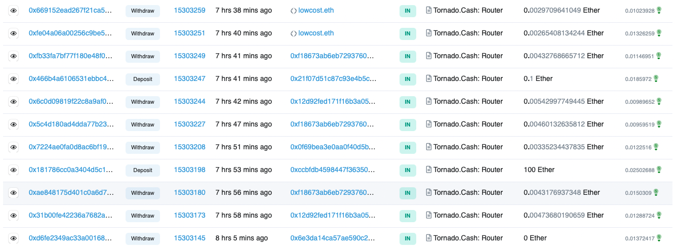 惰锛寰浠骞 Ronin 璺ㄩ琚Л浜浠朵锛椐浠ユ 100 椤 ETH 荤锛杞叉稿椤 ETH Tornado锛剁璨℃块ㄨ〃绀轰杩借工颁朵腑骞惧椐浣锛浣宸茬浜涓姝ワㄤ渚浜ゆ搁板锛㈠凡缍琚Л瀹㈣恒