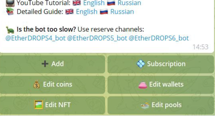 这个机器人由0xCheck建立,与Nansen警报类似,它允许你在Telegram上设置通知,免费了解特定钱包、流动性池或NFT系列的任何动向。