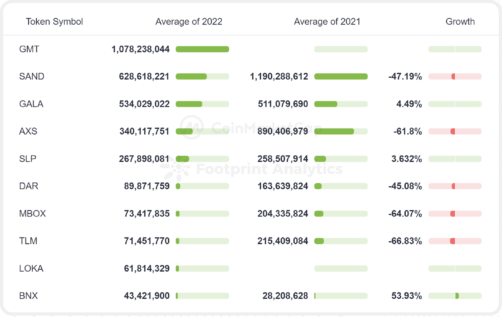 目前,无论是第一个家喻户晓的加密货币游戏 Axie Infinity 还是第一个主打 Move to Earn 的项目 STEPN,今年的活跃用户数都跌出了前三名,可见行业更替速度之快。