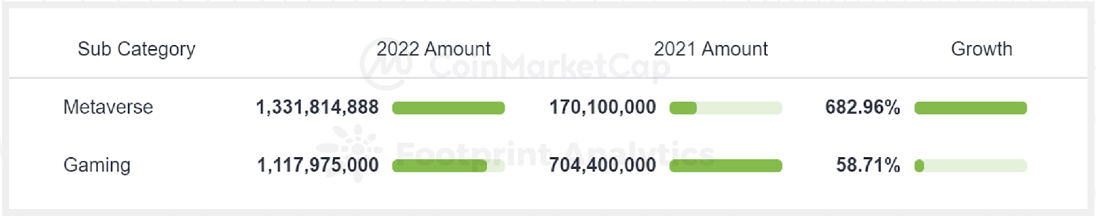 摘要:从下图中可以看出,2022 年,风险投资公司开始更多地关注 Web3 领域,尤其是关注 GameFi 和 Metaverse 赛道。也就是说,GameFi 和 Metaverse 赛道占据了更多的投资份额,这一投资领域分类中还有工具、交易和借贷等类别。这两个类别的融资金额已经从 2021 年的 8.74 亿美元增加到 2022 年的 24 亿美元。