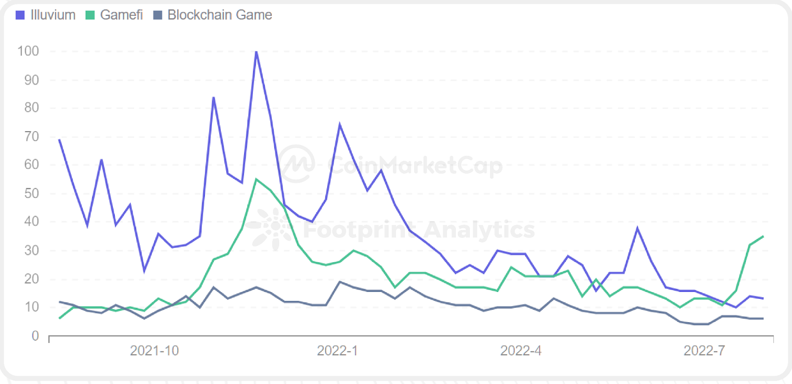 图32:谷歌关键搜索词分析——对 Illuvium、GameFi 和 Blockchain Games 的兴趣度