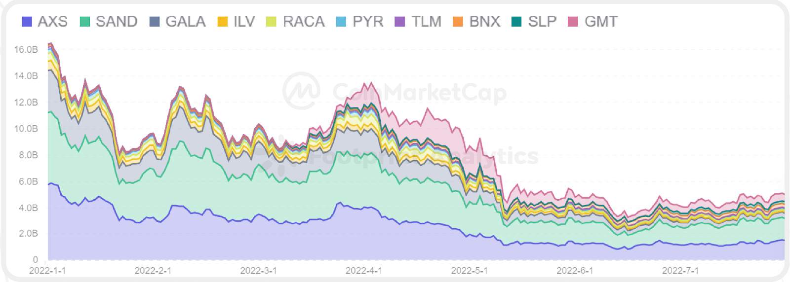 图 21:前十名的 GameFi 代币市值趋势(按市值排名)