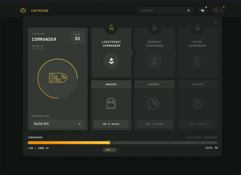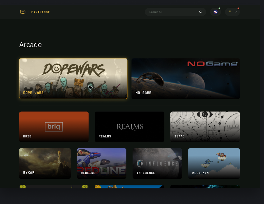 传统的加密钱包是为通用用途设计的,不具备玩家在模拟应用中习惯使用的许多高级功能。现有钱包中缺少的特别重要的游戏功能包括发现、身份和社区原语。社交元素对于多人游戏的成功至关重要;玩家希望能够看到好友在玩什么游戏,基于共同的兴趣将组织成社区,并发现新的游戏。通过传统渠道与加密游戏集成的可能性不大:由于传统游戏行业对加密货币的抵制,如Valve禁止其平台上所有NFT和加密货币,似乎必须原生构建一个等效的加密解决方案。一个致力于弥合这一差距的团队是加密游戏的“Steam”——Cartridge。Cartridge上的用户将能够浏览和使用精选的加密游戏,从任务中获得奖励,升级他们的角色,并与朋友和社区互动。游戏专用的加密钱包为区块链游戏玩家提供了这些缺失的发现和社交功能:Cartridge等平台充当了基础设施,将加密游戏的可组合性优势连接到应用层之外。