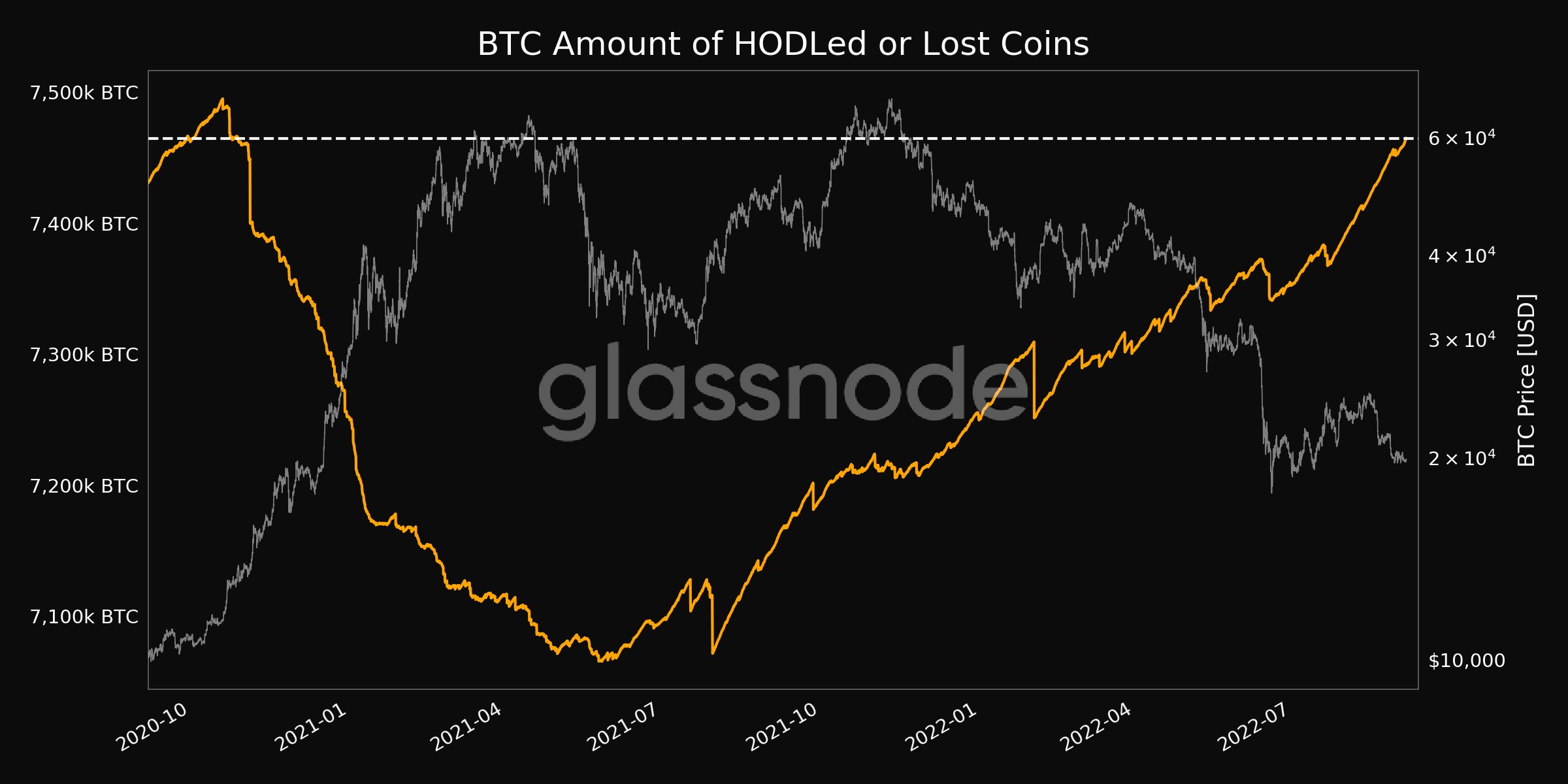 与此同时,一个补充指标,即被持有或以其他方式停止流通的比特币数量,达到了近两年来的最高水平。