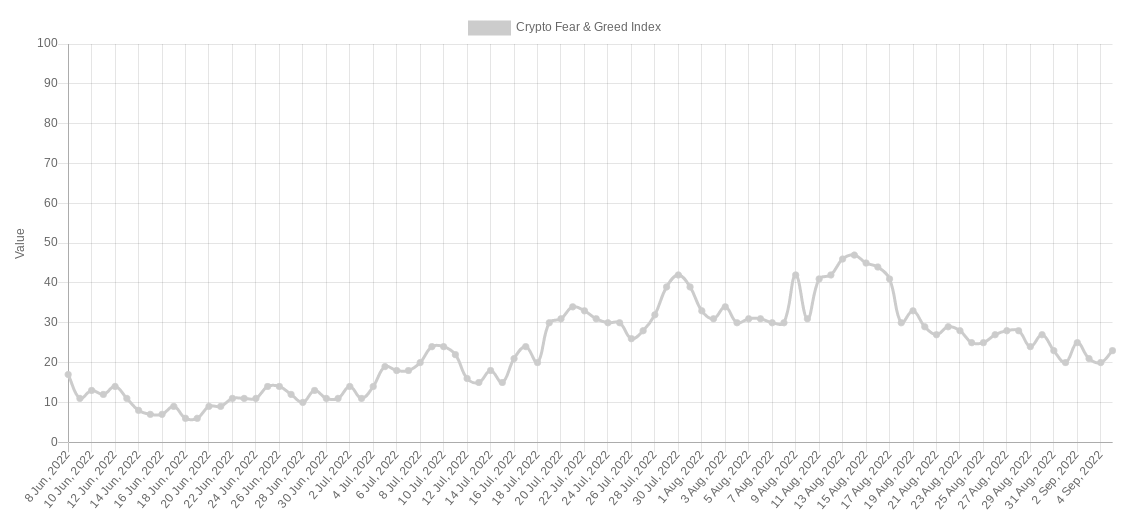 加密货币恐惧与贪婪指数在上周末仅触及20/100。