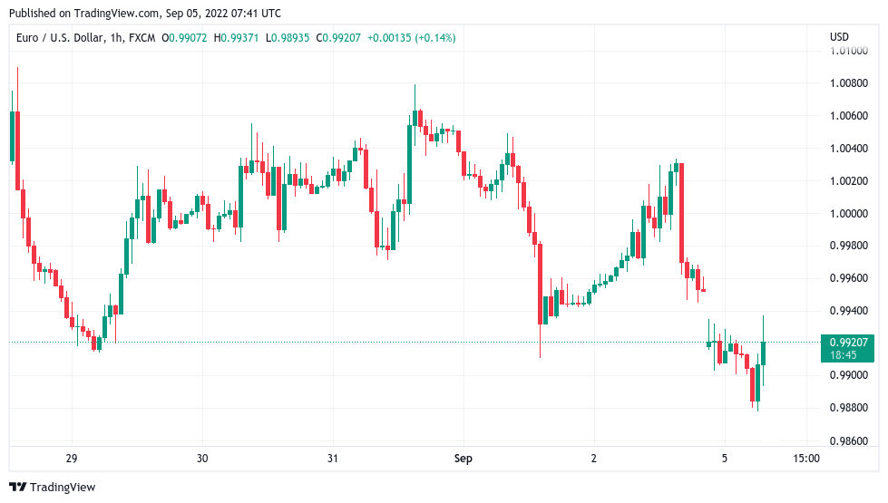 截至9月5日,欧元兑美元汇率跌至2002年9月以来的最低水平,跌破0.99美元。