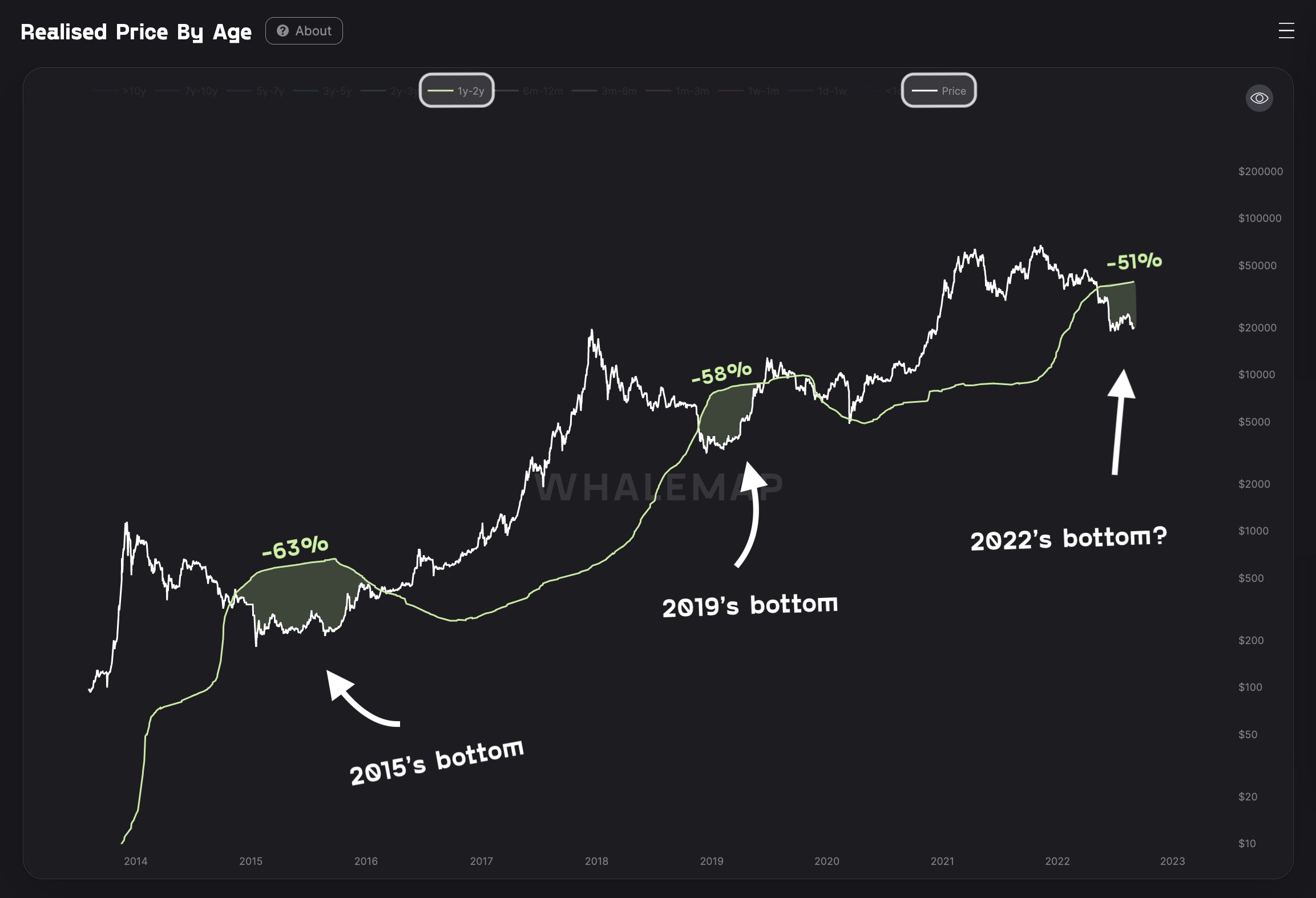 比特币已实现价格注释图表 来源:Whalemap/推特
