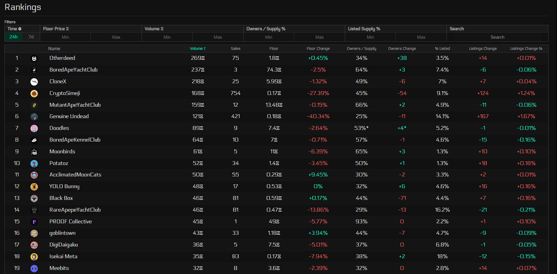 Cryptoslam将整个市场的交易量与单一的NFT藏品进行比较,以了解其目前是否战胜了市场。