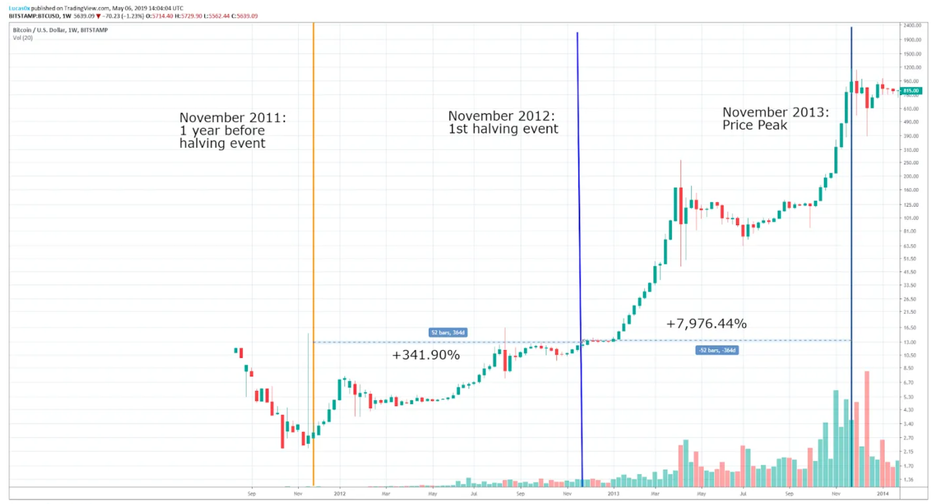当时,我们只有两次减半的数据。如果你能想象,鉴于样本量小,这是一个大胆的主张。