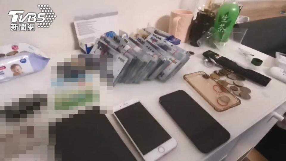 一把又一把的千元大钞,这裡有上百万元赃款,一旁桌上还有犯案用的手机、平板电脑,透天厝成了诈欺洗钱机房。