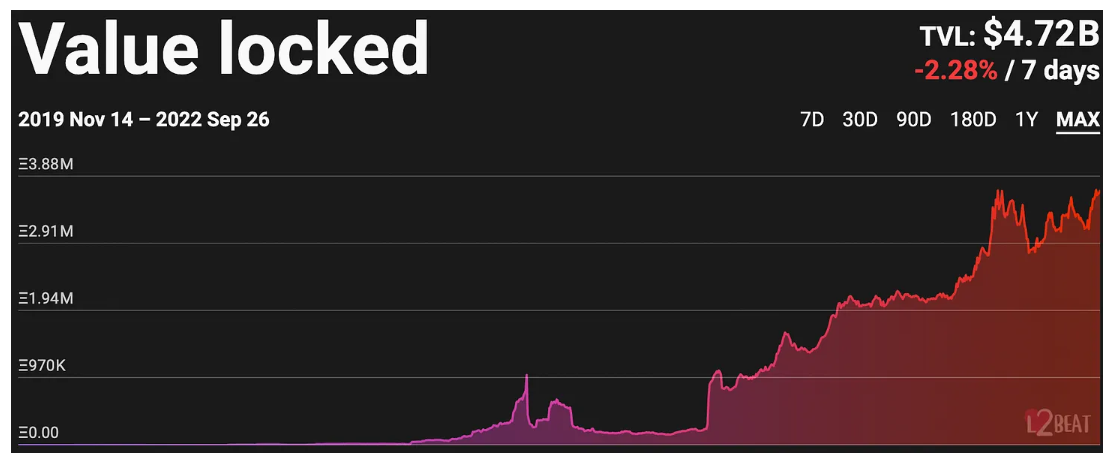 事实上,尽管处于熊市,锁定在Layer 2上的以ETH计价的价值达到了历史新高。