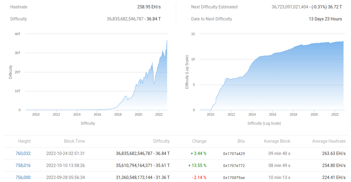 由于增加了算力,10月24日挖矿难度又上调了3.44%,达到36.84万亿的又一个历史新高。