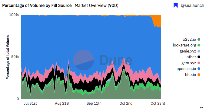随着NFT行业竞争日益激烈,OpeaSea的主导地位继续萎缩。