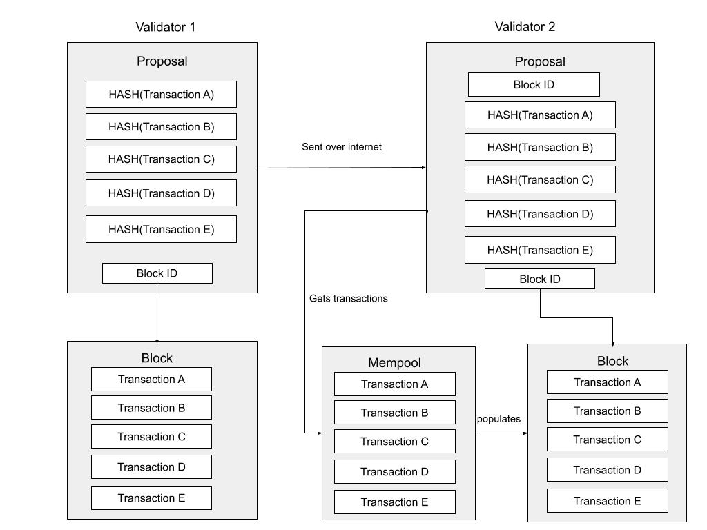 在当前设置中,验证者提议区块,将哈希值和区块发送给其他验证者,这导致了不必要的等待。