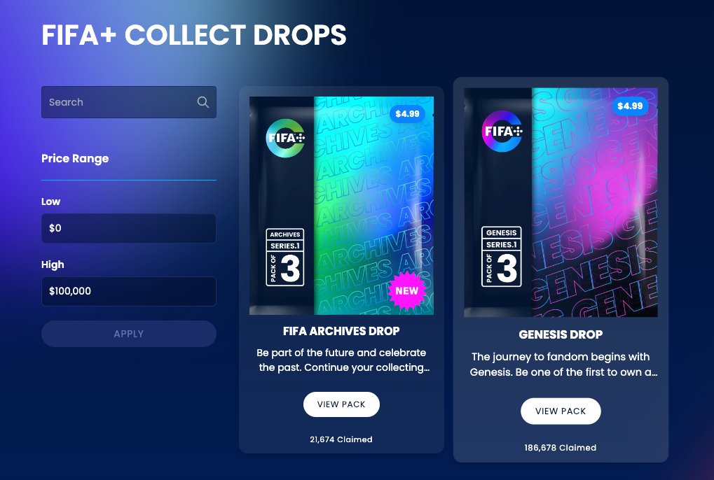 FIFA+Collect的Genesis系列的供应巨大,并且是一次性发布的。