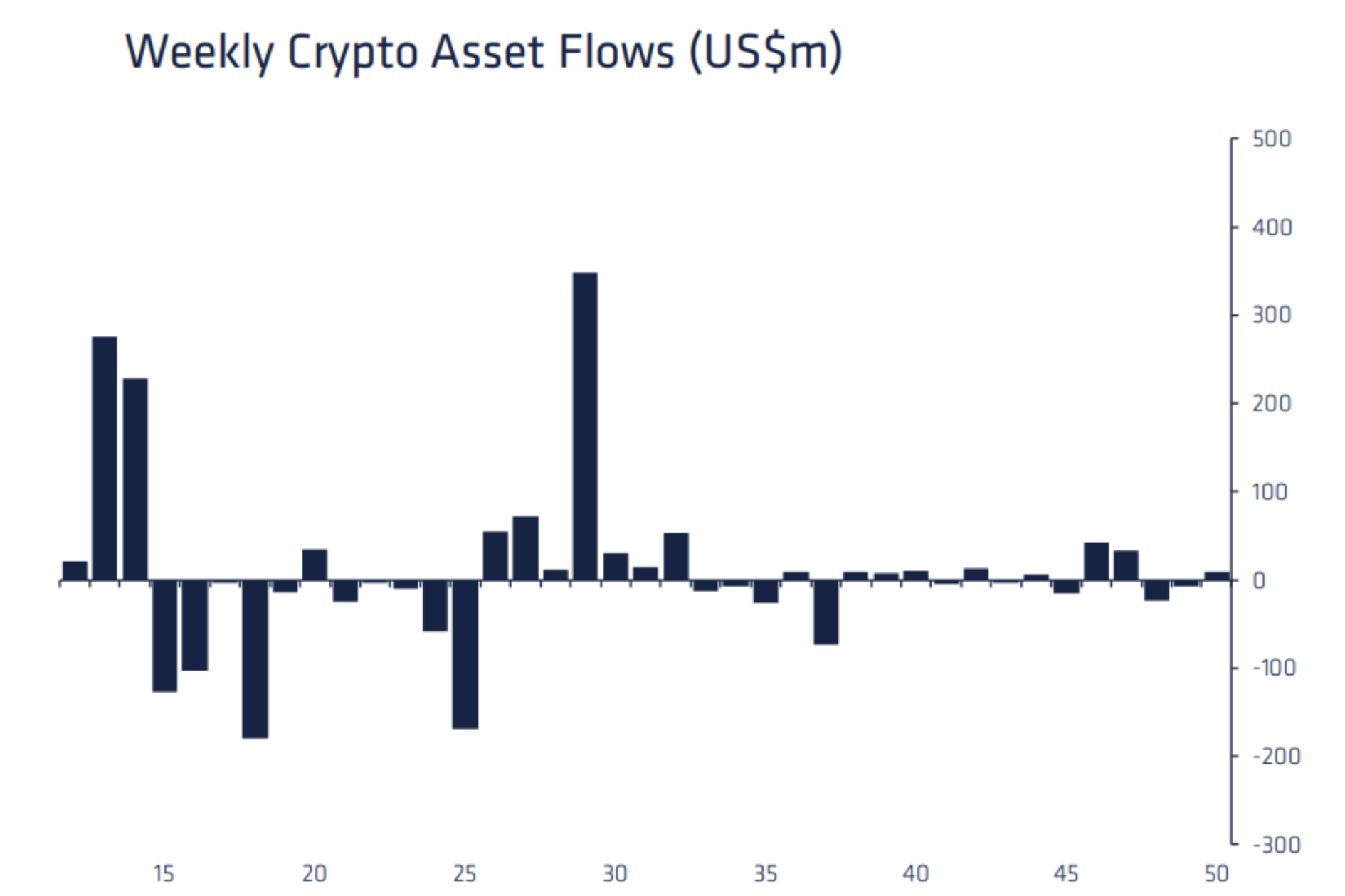 CoinShares报告称,在FTX崩溃后,机构比特币投资工具的流入总额为1.08亿美元,上周新增1700万美元。值得注意的是,目前的流入明显低于今年第25周和第35周,后者促成了比特币向25000美元的上行趋势。