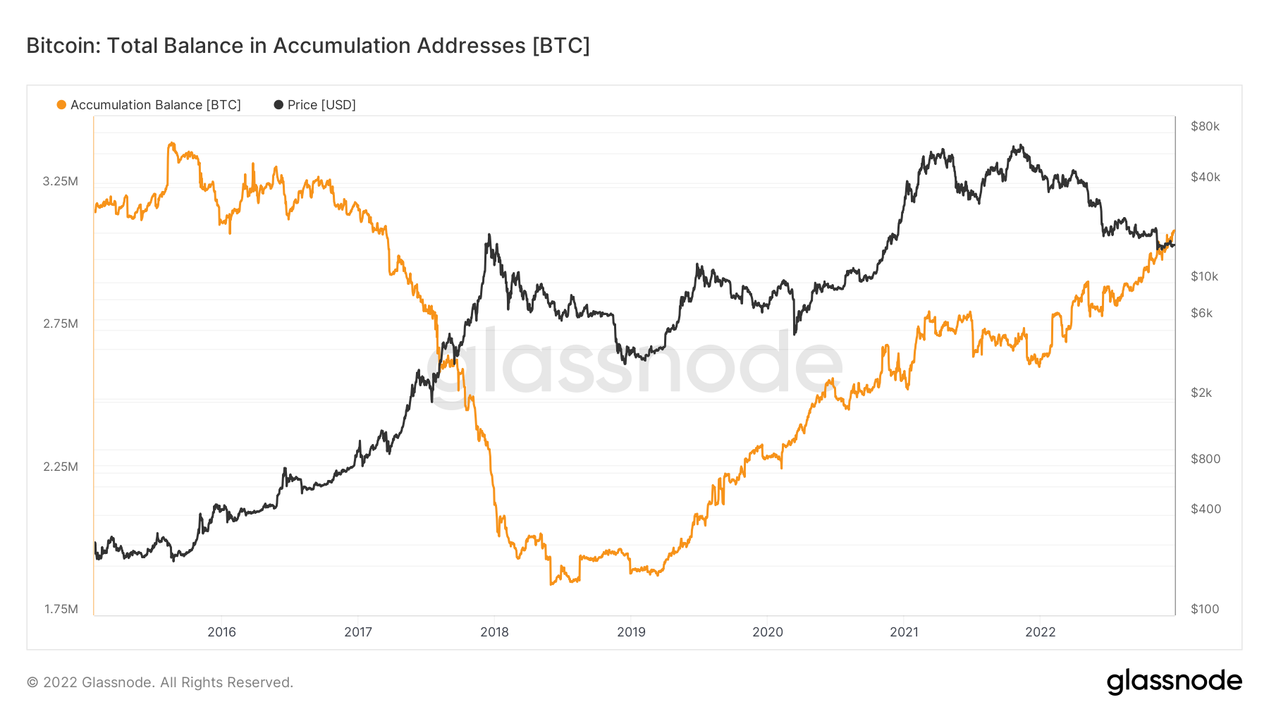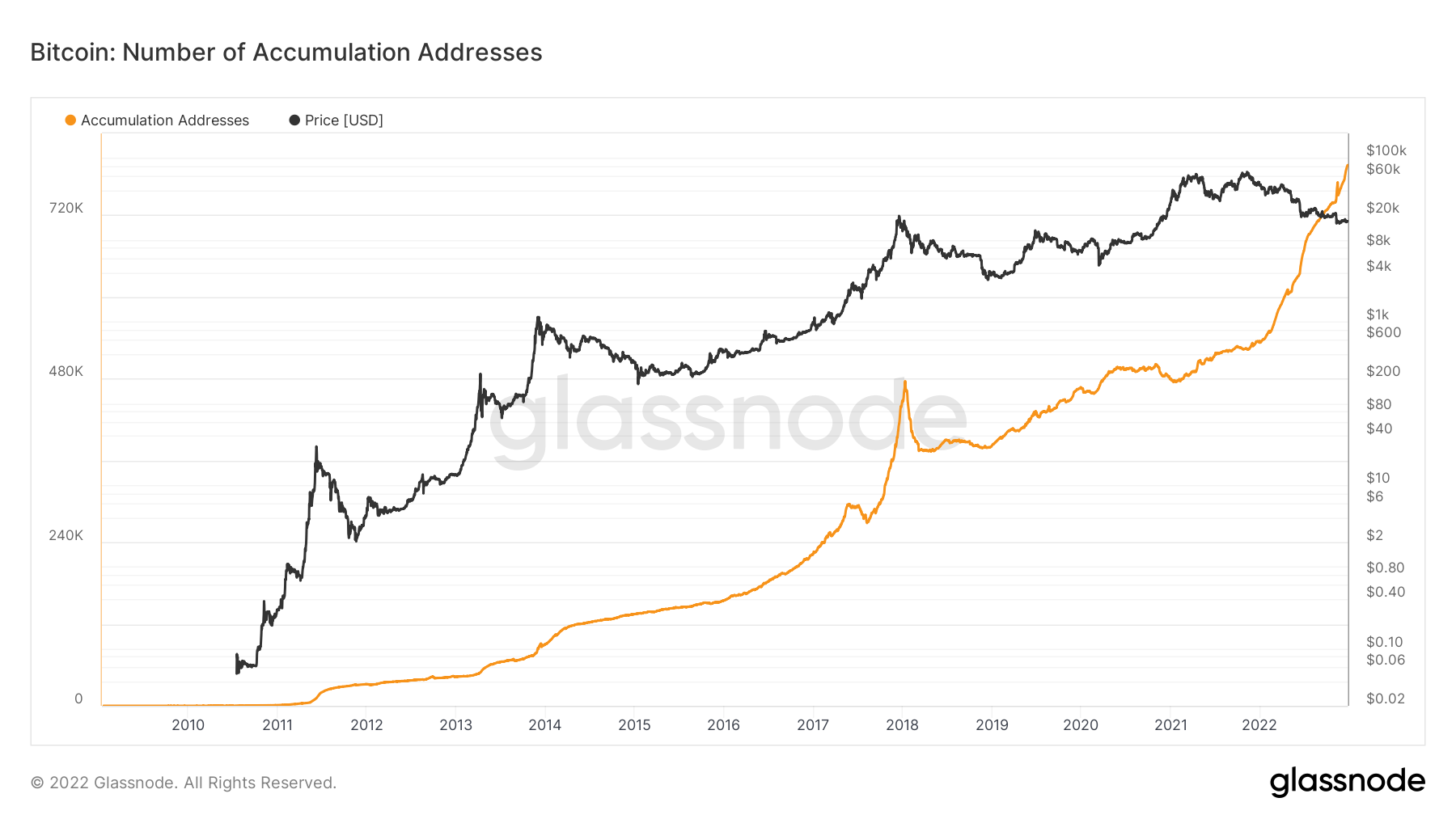 有人在2022年比特币熊市期间一直在积累比特币,而且这一趋势没有逆转的迹象。