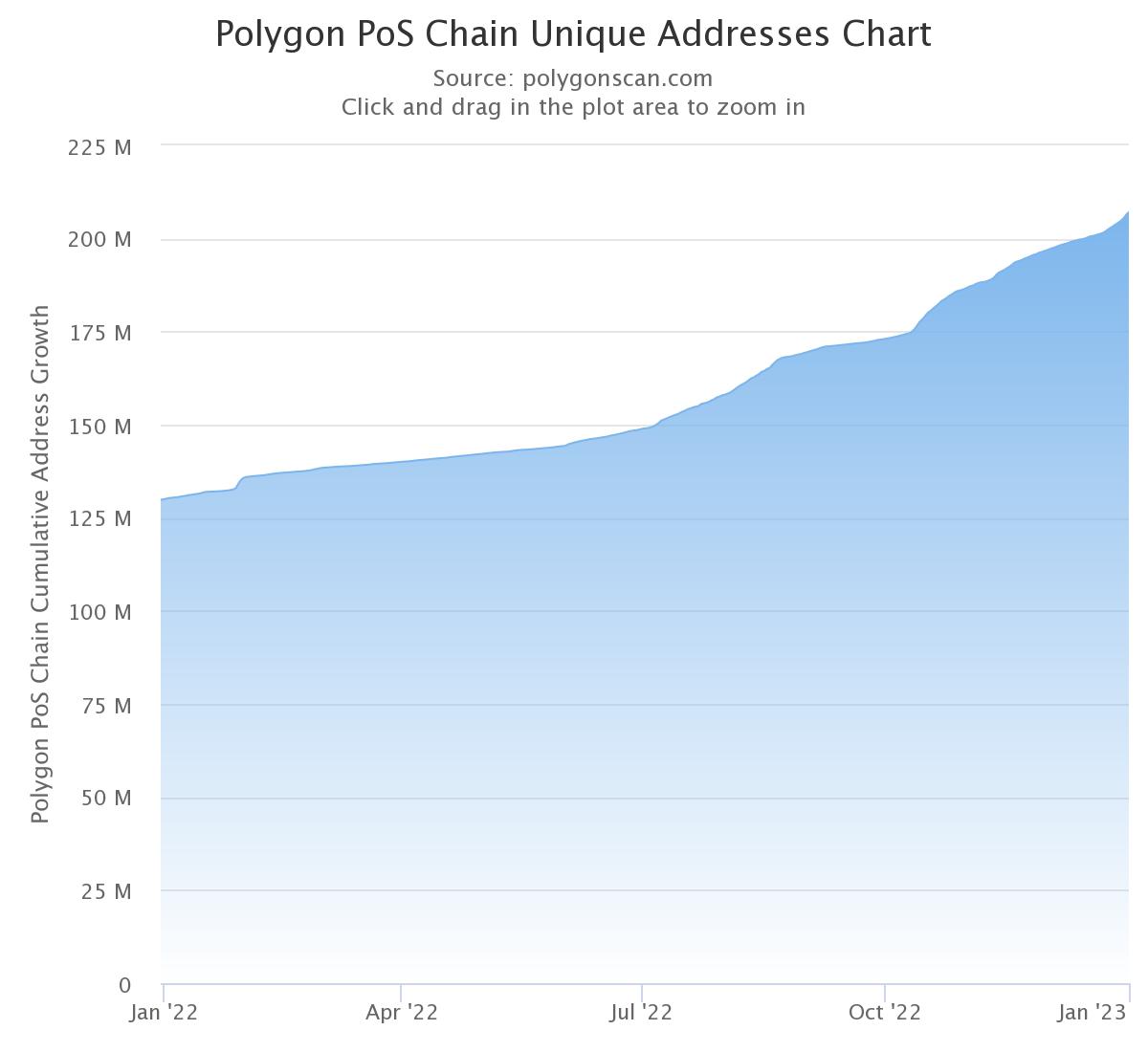尽管面临2022年的挑战,Polygon仍积累了2亿个地址
