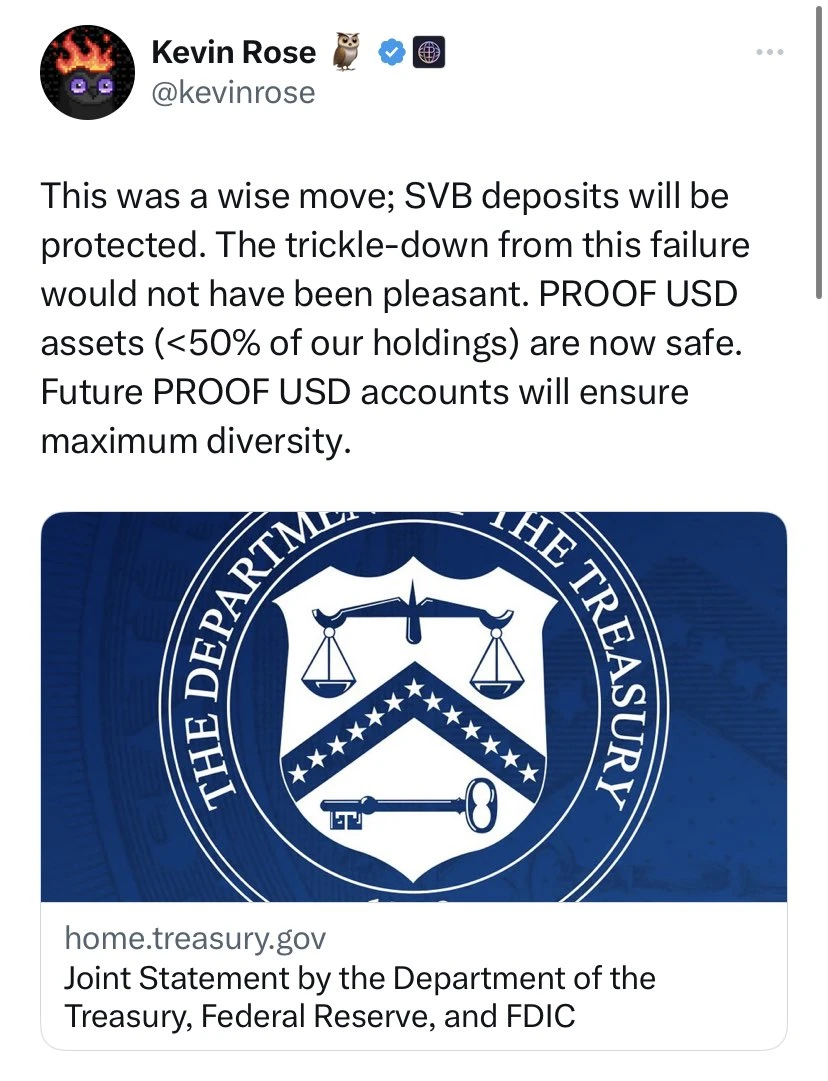 5. PROOF 将近 50% 的总储备资金放在破产的硅谷银行中。虽然这笔资金目前是安全的,但引发了对财务责任的质疑,比如沟通和风险管理不善。
