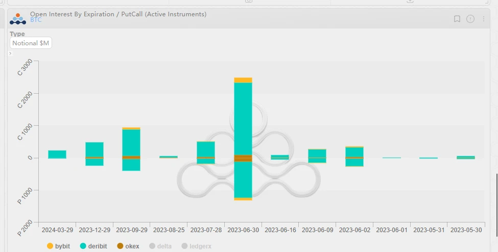 从年初到现在的整个市场的 PUT / CALL 可以看出,纯币本位的 deribit 在 PUT 端的成交比例一直不高,市场对于 U 本位的以及跨币种保证金本位的交易所,更倾向于用 PUT 的方式来参与期权。这也和前面猜想的大量持有双币结构化的 “低买”仓位的猜想匹配。