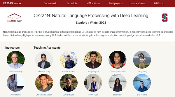 视频课程总计23集,在YouTube上免费提供,部分课程由斯坦福大学教授、斯坦福自然语言处理组负责人克里斯托弗·曼宁老师讲授。此课程在斯坦福官网上的学费为4200美元—5600美元,若想参加最新一期课程,并获得斯坦福成绩单,可至官网等候开放注册。推荐先看免费视频。