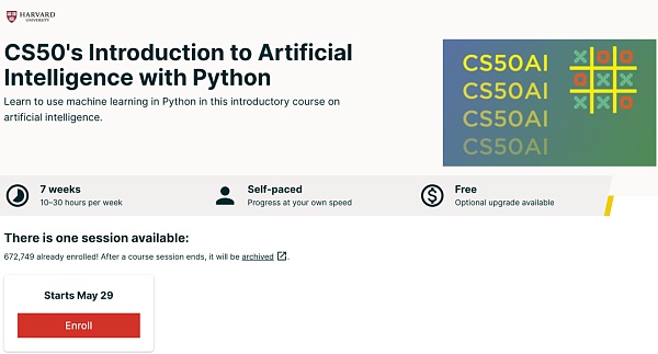 官网:https://www.edx.org/course/cs50s-introduction-to-artificial-intelligence-with-python