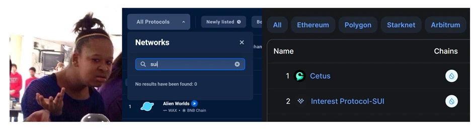 而 Dapp 团队也有大量没有做完的工作,为什么 DappRadar 到现在仍不提供 Sui dAPP 看板?为什么已上线的 DeFi 项目仍然没有完成 TVL 和 Volume 数据接入 DeFillama?为什么 Portal Bridge 仍不能提供 Sui 跨链桥的交易数据和铸币量?这些都是对于运营和市场营销极为重要的参数。没有数据,我甚至不能写更多 thread 来推广 SUI 生态。