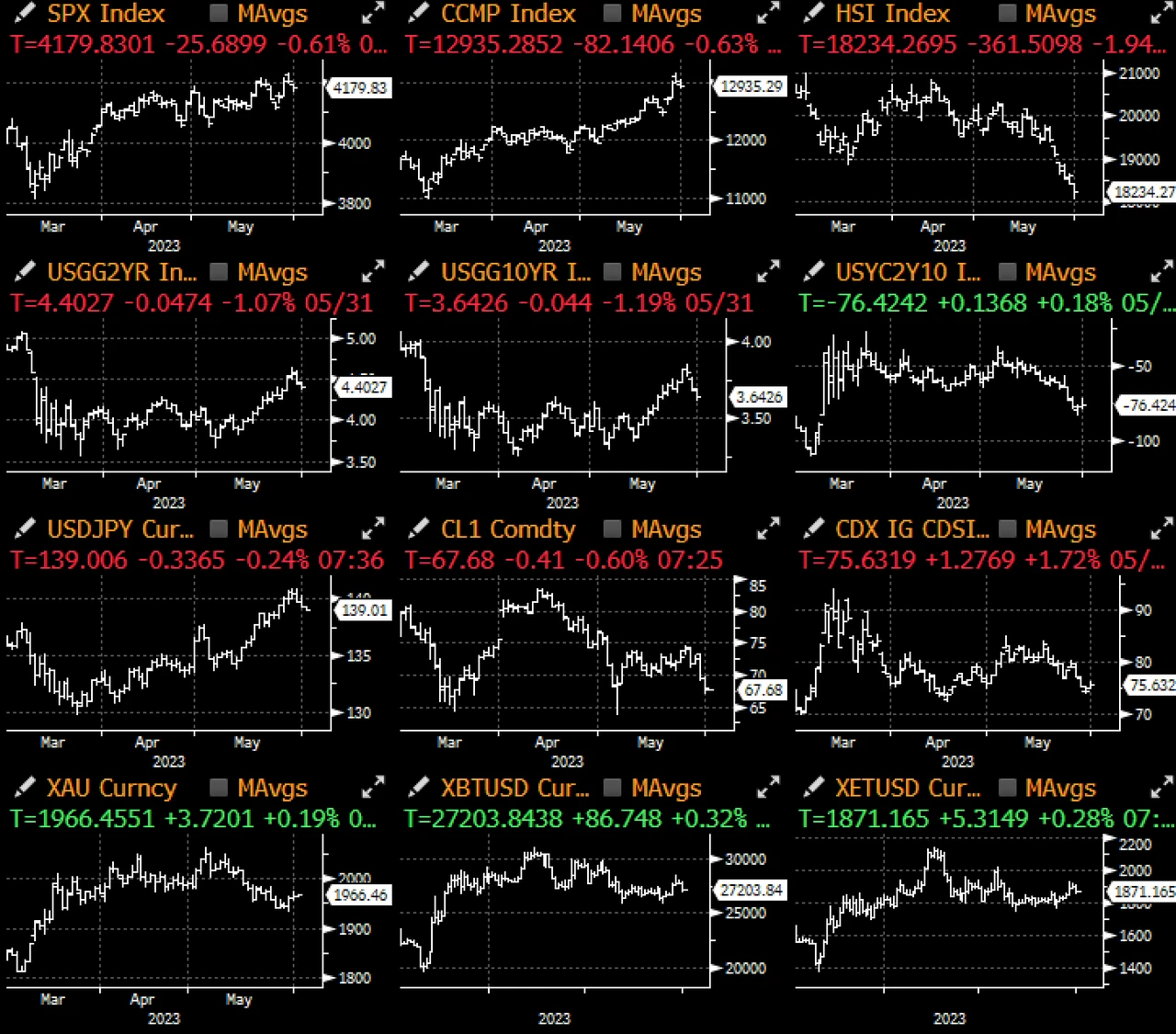在政治方面,债务上限的争论似乎终于要结束了,共和党控制的众议院刚刚通过了投票,该法案应该会在民主党领导的参议院顺利通过,然后在下周可能的 X-date 之前送达总统办公室;市场定价显然认为这个问题“已成定局”,短期国库券回落到基准利率区域,我们其他人也很高兴最终摆脱这些令人尴尬的演出。