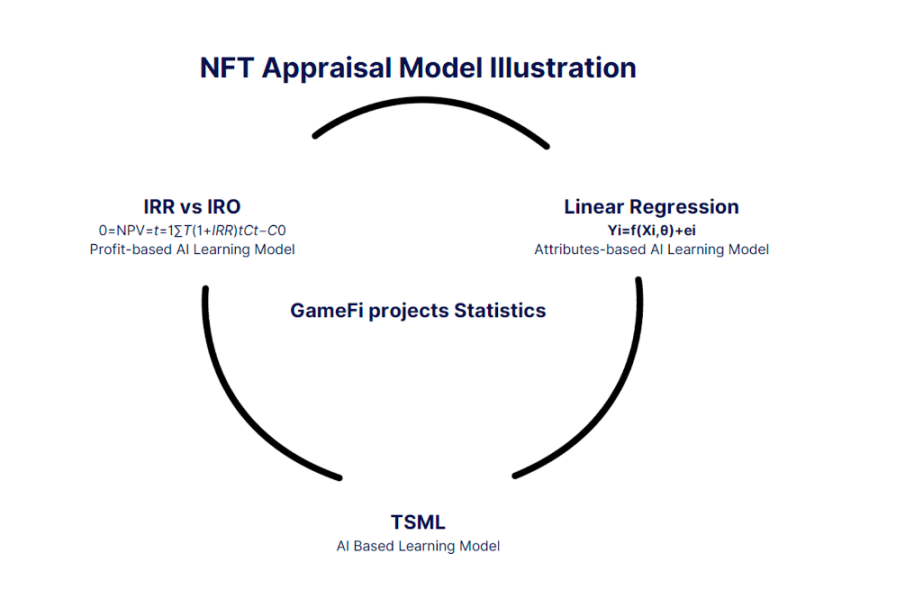 Banksea 由数据聚合器、AI 分析和用户端组成。数据聚合器收集和处理原始数据,AI 通过模型生成 NFT 估值,最终以两种方式给到用户端(Oracle - Smart Contract /Banksea API)。其中 AI 处理环节,是他们的机制核心。通过采用时间序列预测法建立模型,通过一定时间的数列来预测趋势,即通过 NFT 的历史特征数据来估计当前的 NFT 价值。估值模型建立后,需要对模型的输出进行评估。人工智能节点采用 MAPE(平均绝对误差百分比),参照其他评价指标,综合评价模型效果。最终,Banksea 将 NFT 采集值(包括市场地板价、AI 地板价、 24 h 平均交易价格等)和 NFT 估值(包括标准估值和估值范围)同步到合约上。