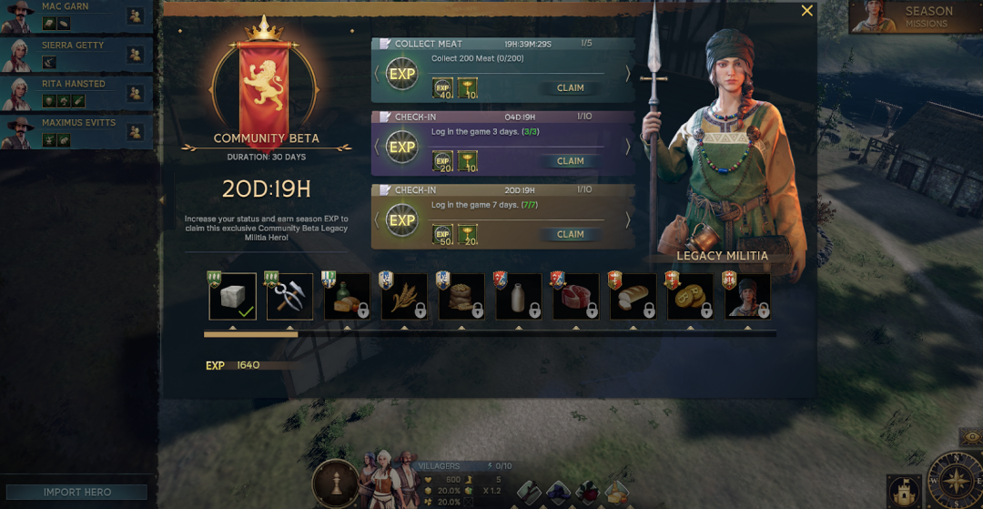 测试版新增了每日任务和赛季任务。玩家在完成任务后,会得到各自的奖励和经验值提升,如果最终顺利完成赛季任务,还能够免费领取一个民兵英雄。并且经验值排名前 100 的玩家将成为 BLOCKLORDS 创始人协会成员,除了在 Discord 中担任特殊角色外,还拥有一系列福利,比如:与 BLOCKLORDS 创始人的每季度对话,即将到来的新铸造活动的白名单权限等。