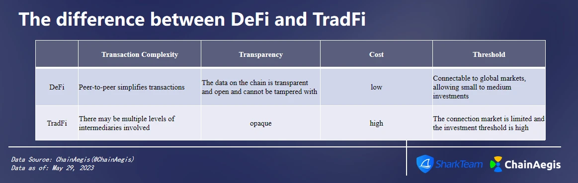 SharkTeam 对 DeFi 与 TradFi 部分特性统计如下:
