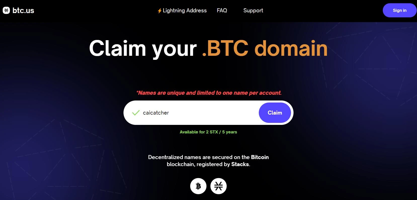 2.BTC.US:基于 Stacks 网络发行的.btc 域名