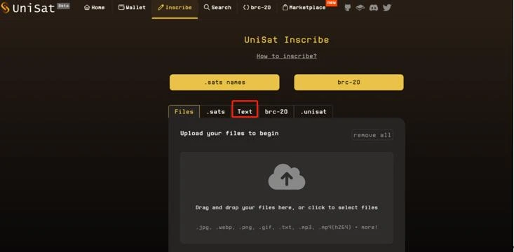 以 Unisat 平台为例,想要铭刻一个新域名: